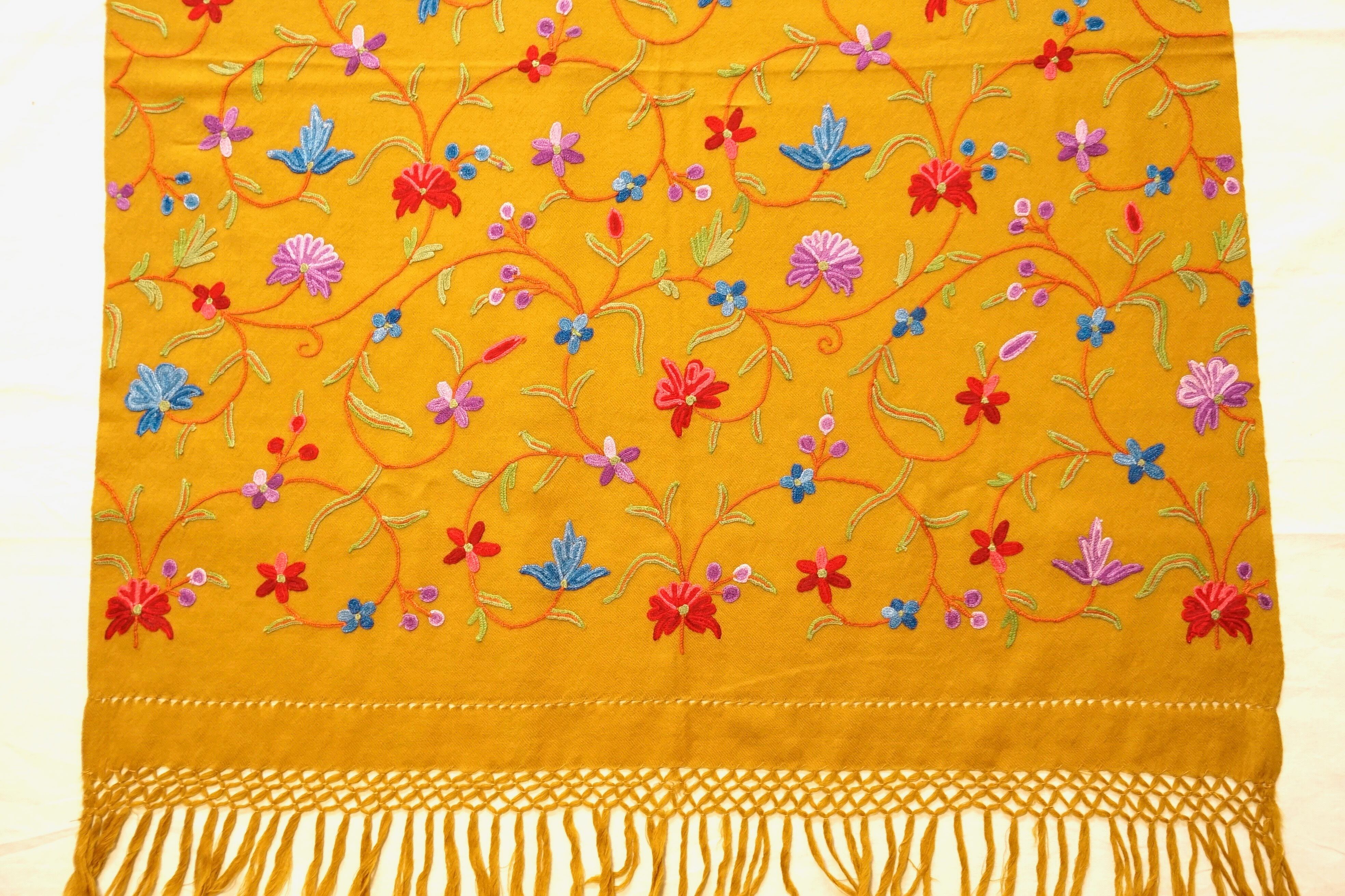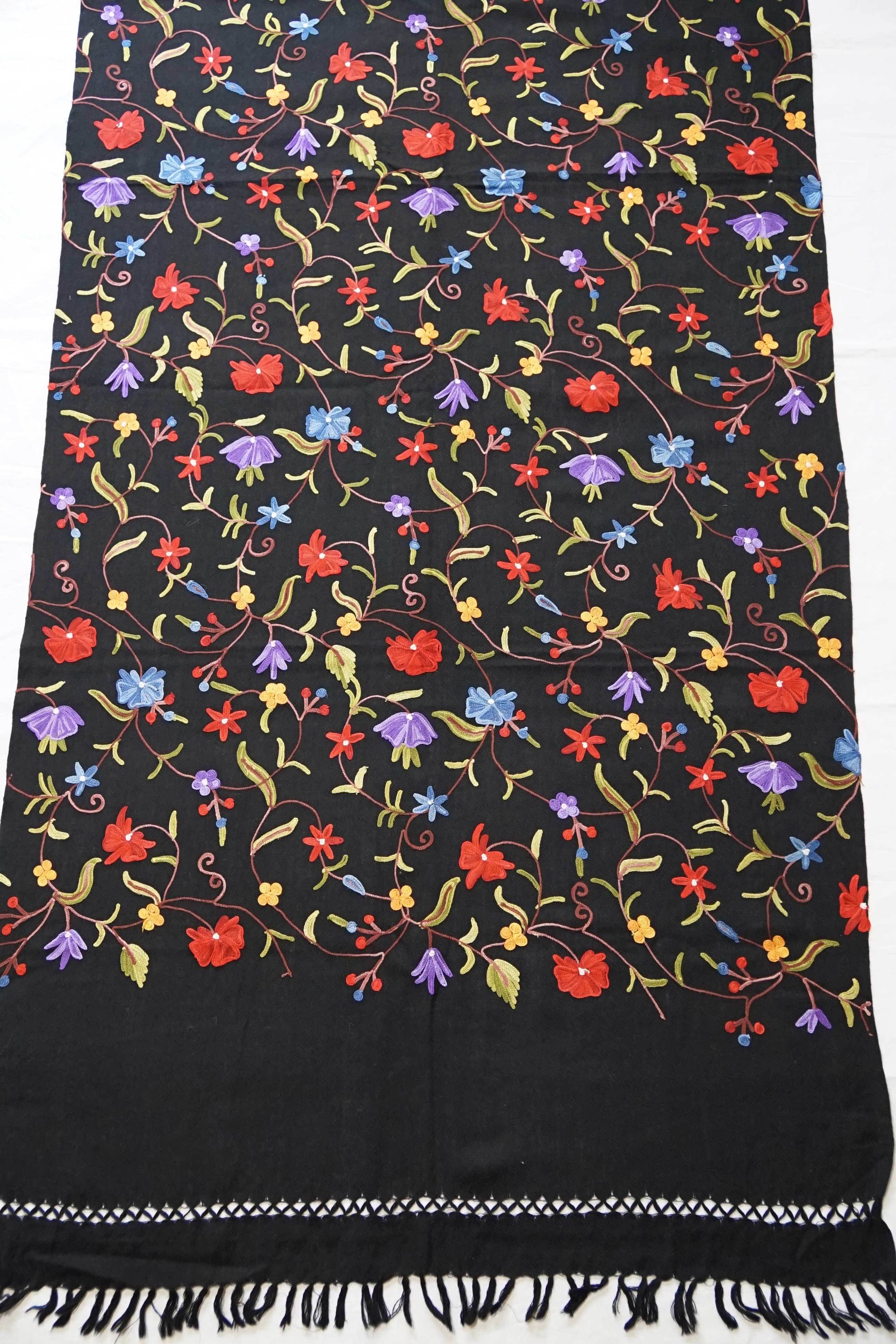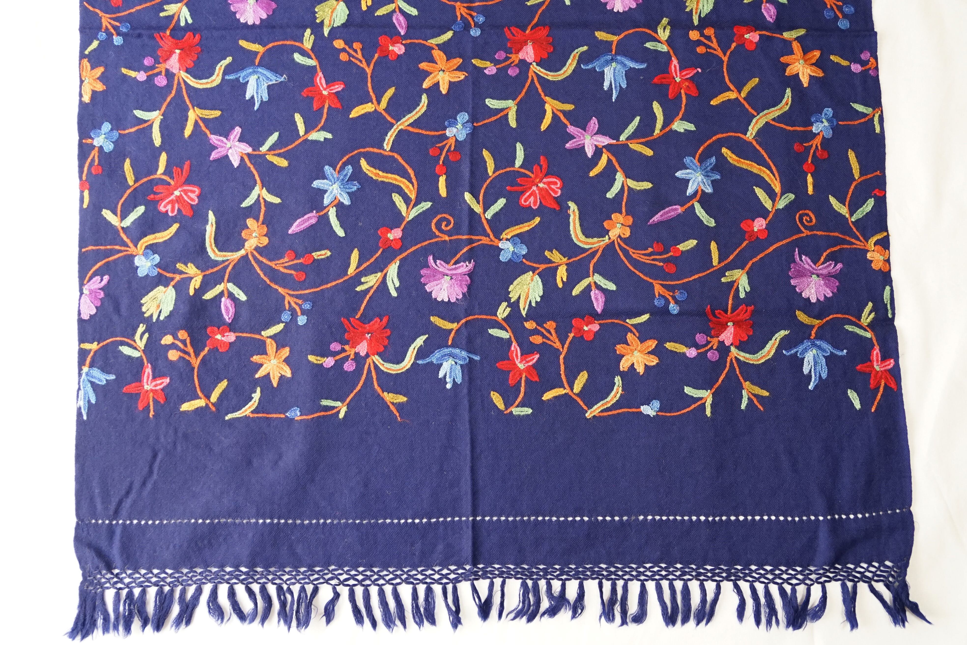 インド北西部カシミール地方に伝わる華麗な伝統刺繍工芸の一つ、アリワークと呼ばれる刺繍が施されたストールです。