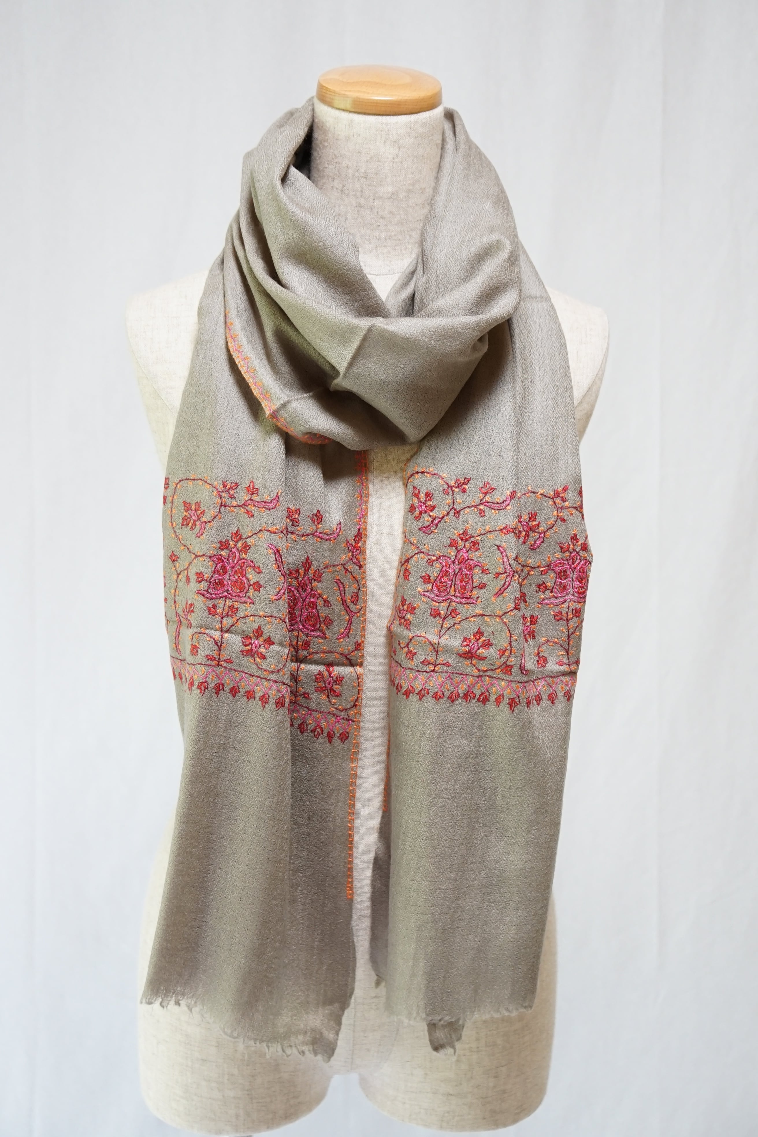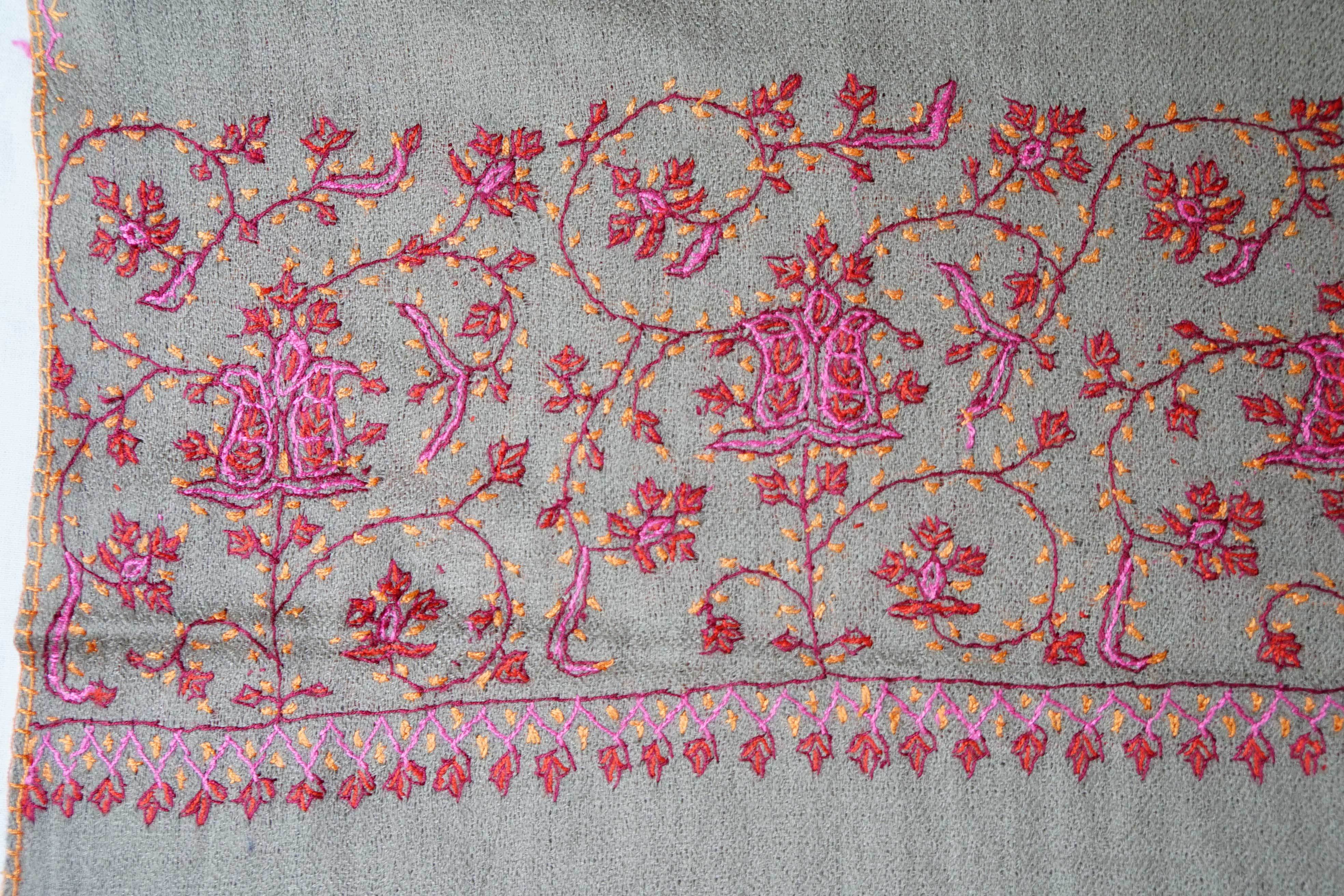 パシュミナにソズニ刺繍を施したインド・カシミール地方の伝統工芸品です。