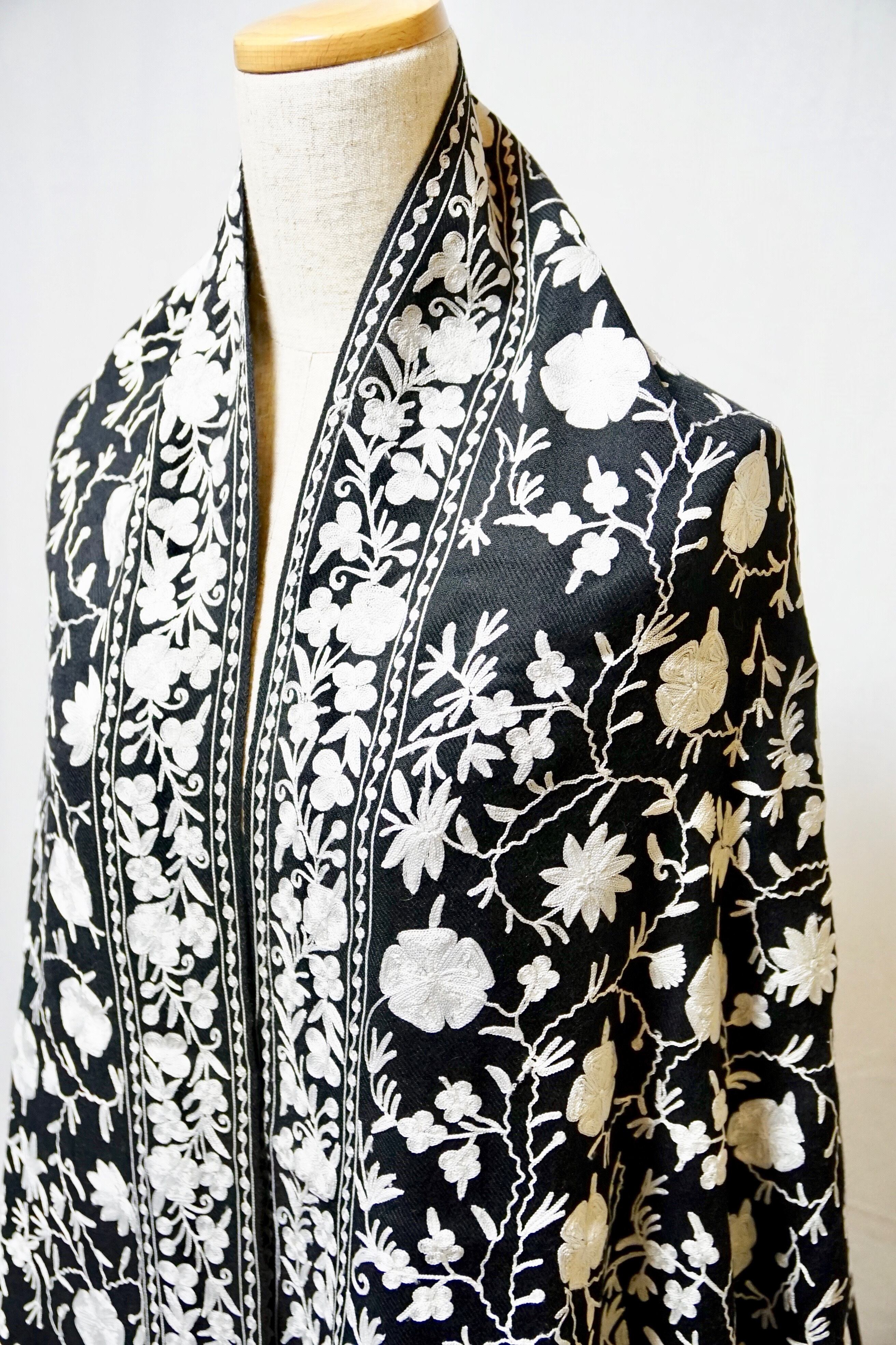 インド北西部カシミール地方に伝わる華麗な伝統刺繍工芸の一つ、アリワークと呼ばれる刺繍ストールです。