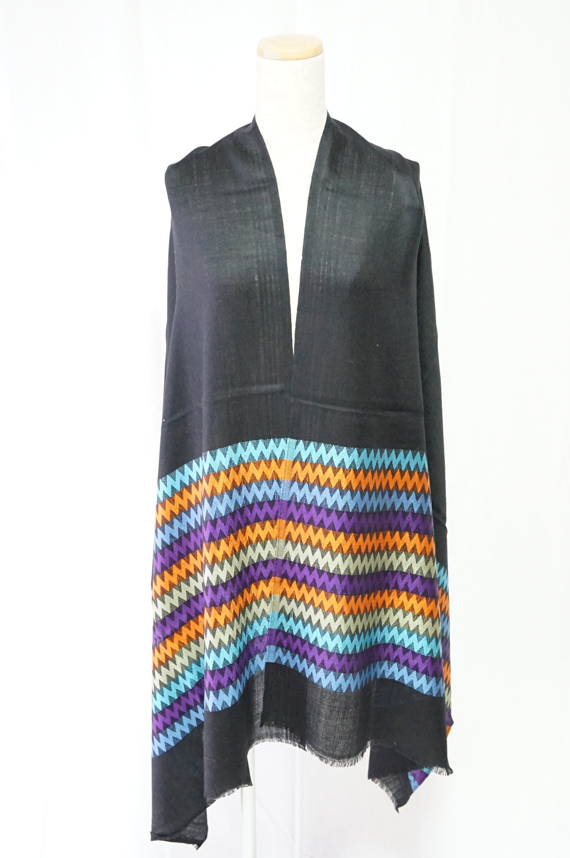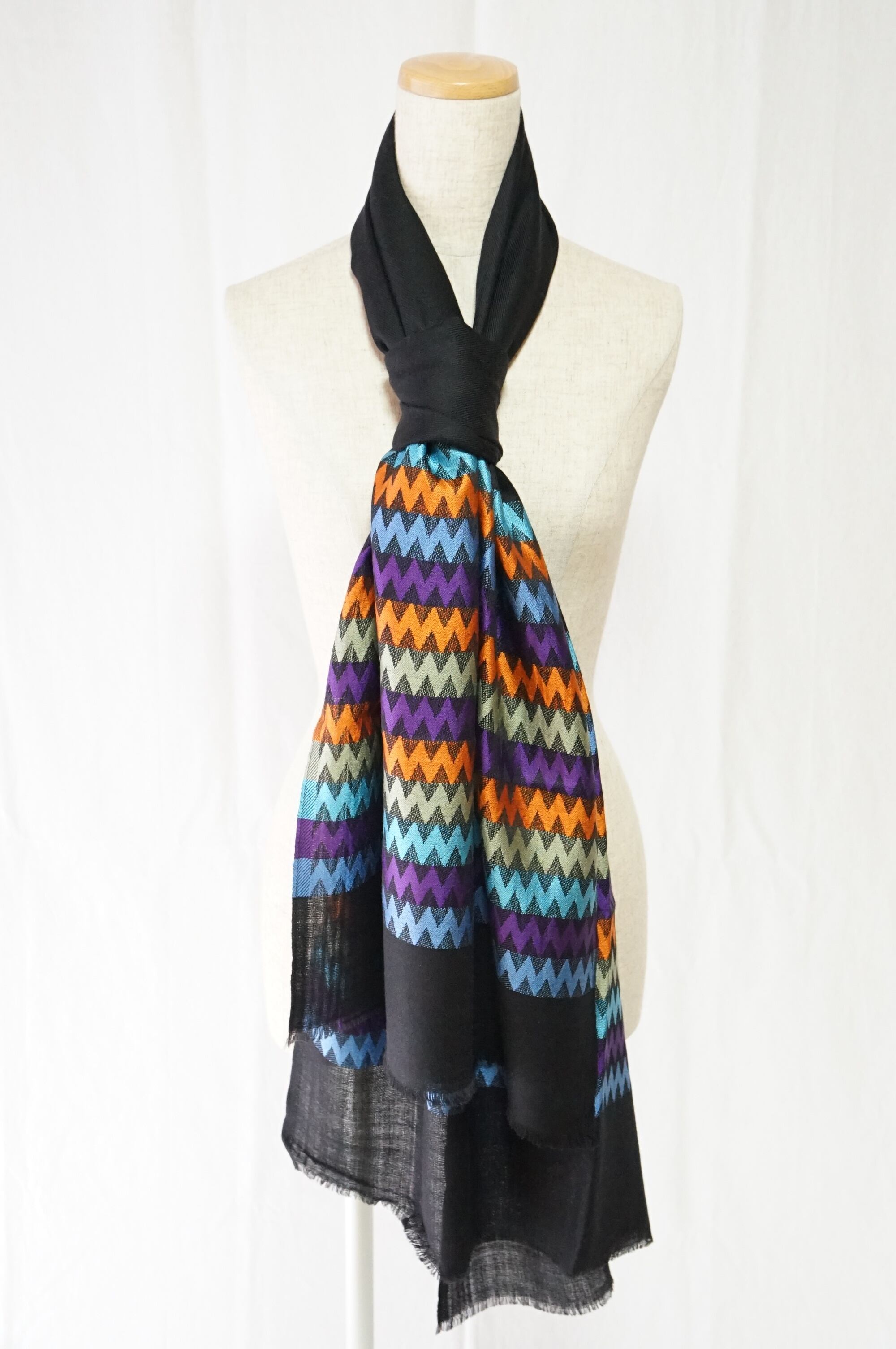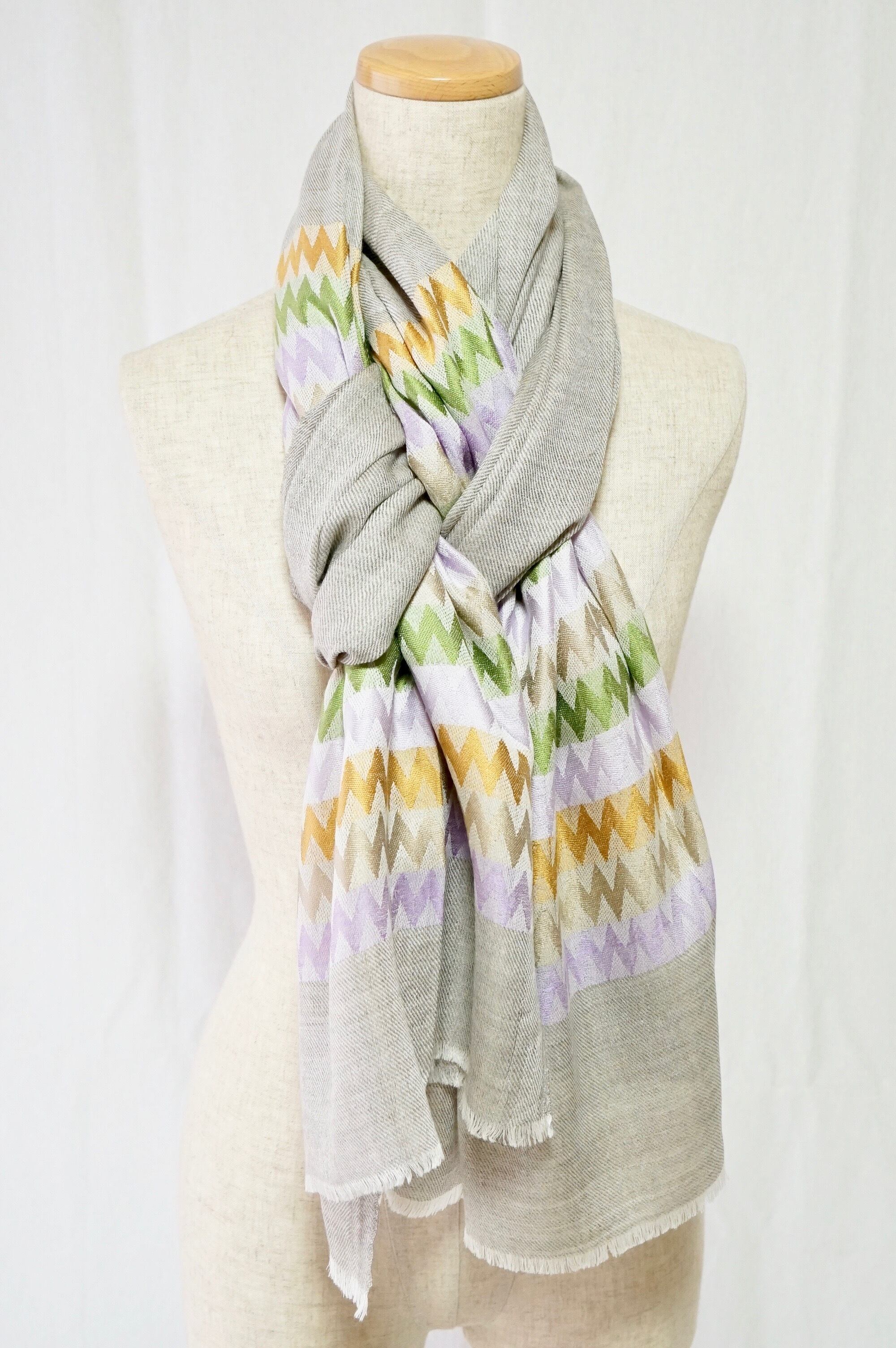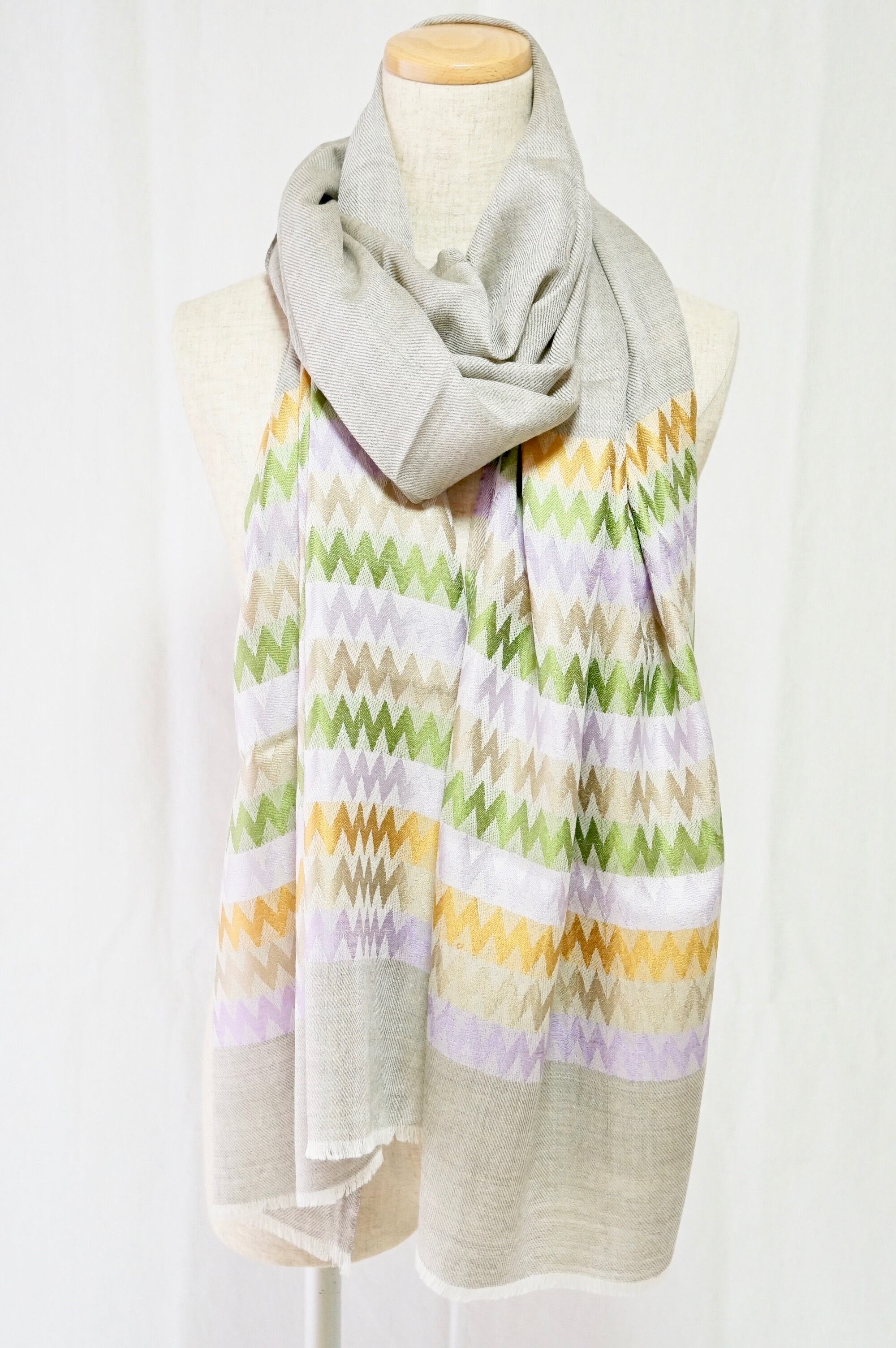肌触りが優しく、色彩豊かなキカウェーブストライプデザインのパシュミナです。